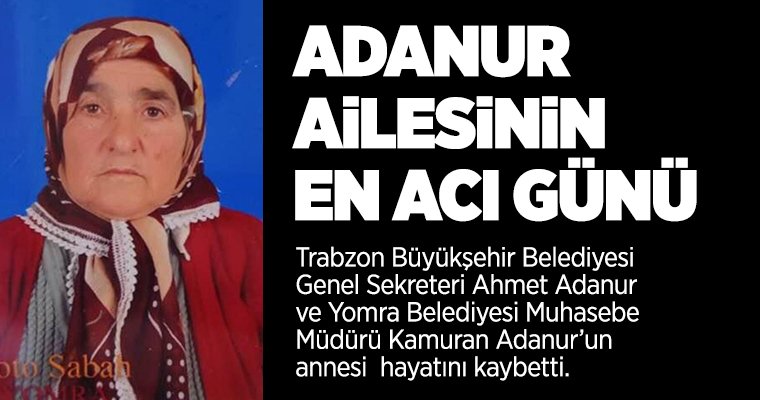 Trabzon Büyükşehir Belediyesi Genel Sekreteri Ahmet Adanur ve Yomra Belediyesi Muhasebe Müdürü Kamuran Adanur’un annesi Miyase (Fadime) Adanur Hayatını kaybetti.