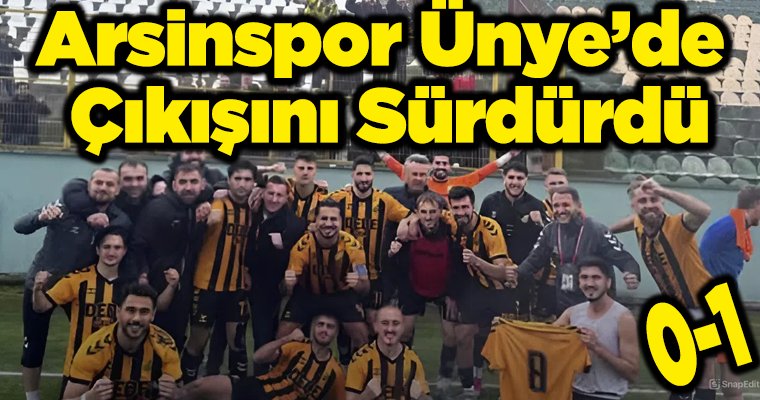 Bölgesel Amatör Ligde zor bir süreçten geçen Arsinspor, Ünye deplasmanında ortaya koyduğu disiplinli oyunla üç puanı hanesine yazdırmayı başardı. Karşılaşmaya kontrollü ve dengeli başlayan sarı-siyahlı ekip, aradığı golü 24. dakikada buldu. Osman Mertoğlu’nun ceza sahası içinde yaptığı düzgün vuruşla öne geçen Arsinspor, bu golle ilk yarıyı 1-0 önde tamamladı.