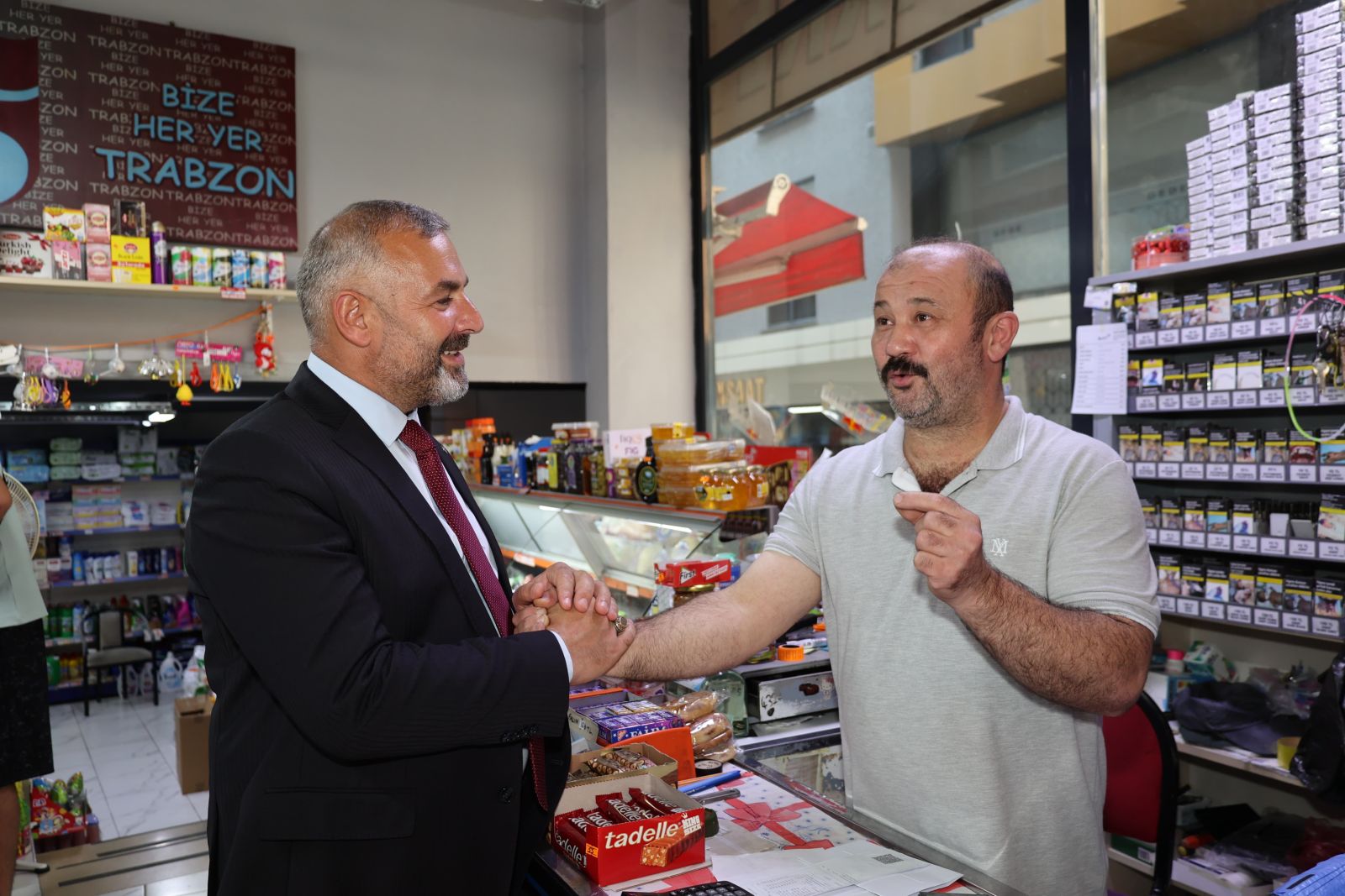 Arsin Belediye Başkanı Hamza Bilgin, ilçede gerçekleştirdiği vatandaş ve esnaf buluşmalarına devam etti. Mahalle mahalle ziyarette bulunarak, hem esnafla hem de vatandaşlarla hasbihal eden Başkan Bilgin, Arsin’in gelişimi için birlikte hareket etmenin önemine dikkat çekti. Başkan Bilgin çalışma programları doğrultusunda hizmetlerine devam ettiklerini dile getirdi.