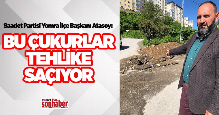 Saadet Partisi Yomra İlçe Başkanı Selçuk Atasoy, ilçede gördüğü eksiklikleri dile getirdi. Başkan Atasoy açılan çukurların önlem alınmadan bırakılmasını gündeme getirdi. Atasoy, “Haftalar önce açılan bu ve bunun gibi çukurlar ilgisizlikten bir türlü kapatılamadı. Toz bulutundan mahalleli boğuluyor. “ dedi
