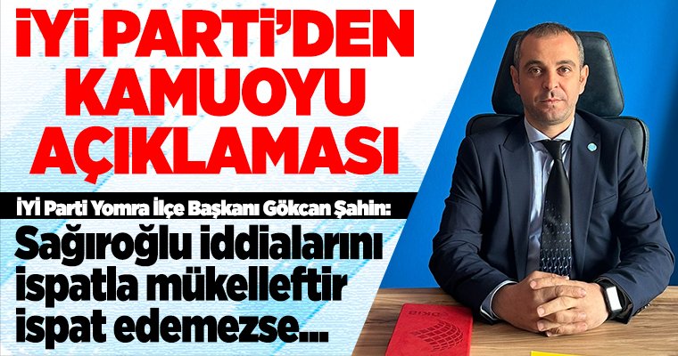 İYİ Parti Yomra İlçe Başkanı Gökcan Şahin, Belediye Başkan Adayı İbrahim Sağıroğlu’nun iddialarına yanıt verdi.