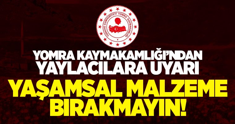 Çeşitli maksatlarla gerçekleştirilen hırsızlık olaylarının önüne geçilebilmesi için oba ve yaylalarda herhangi bir yaşamsal gıda ve malzeme bırakılmaması hususu kamuoyuna saygıyla duyurulur" denildi.