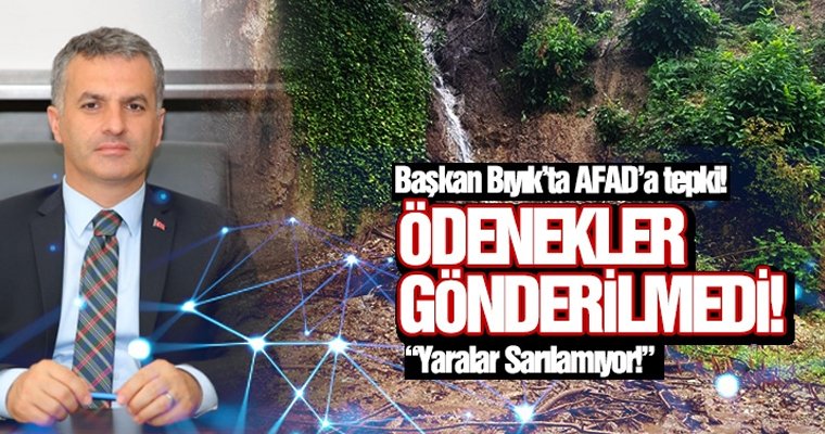 Yomra Belediye Başkanı Mustafa Bıyık, Yomra'da yaşanan sel ve heyelanların ardından ilçeye gerekli ödeneği göndermeyen Afet Acil Durum Yönetim Başkanlığına (AFAD) tepki gösterdi. Bıyık, "Bu şartlarda afetin yaraları sarılamıyor" dedi.