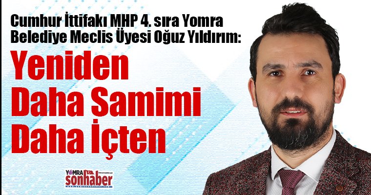 Cumhur İttifakı MHP 4. sıra Yomra Belediye Meclis Üyesi Oğuz Yıldırım gazetemize önemli açıklamalar yaptı. Yıldırım, “Yeni dönemde rabbim nasip ederse hem mecliste hem de halkımızın içinde; ne kadar köyümüz mahallemiz varsa içlerinde olmayı, isteklerini belediye meclisimizde gündeme getirmeyi sabırsızlıkla bekliyorum.” dedi