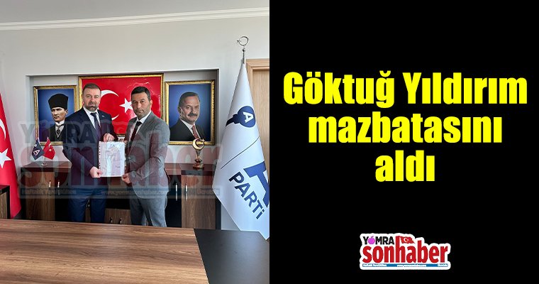 Anahtar Parti Yomra İlçe Başkanlığına Göktuğ Yıldırım atandı. Mazbatasını Anahtar Parti Trabzon İl Başkanı Hüseyin Cahit Kösenin elinden alan Yıldırım, ilçe teşkilatındaki çalışmalarına hız kesmeden devam ediyor.
