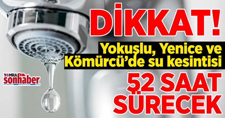 Yomra’da su yetersizliği ve basınç düşüklüğü nedeniyle Yomra’da su kesintisi yapılacak.