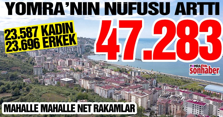TÜİK verilerine göre Yomra’nın 2022 yılı nüfusu 47 bin 283 kişi olarak açıklandı